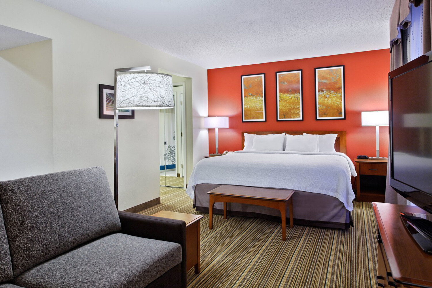 - Apartment-like amenities including a pool, fitness center, lounge area, and tennis courts